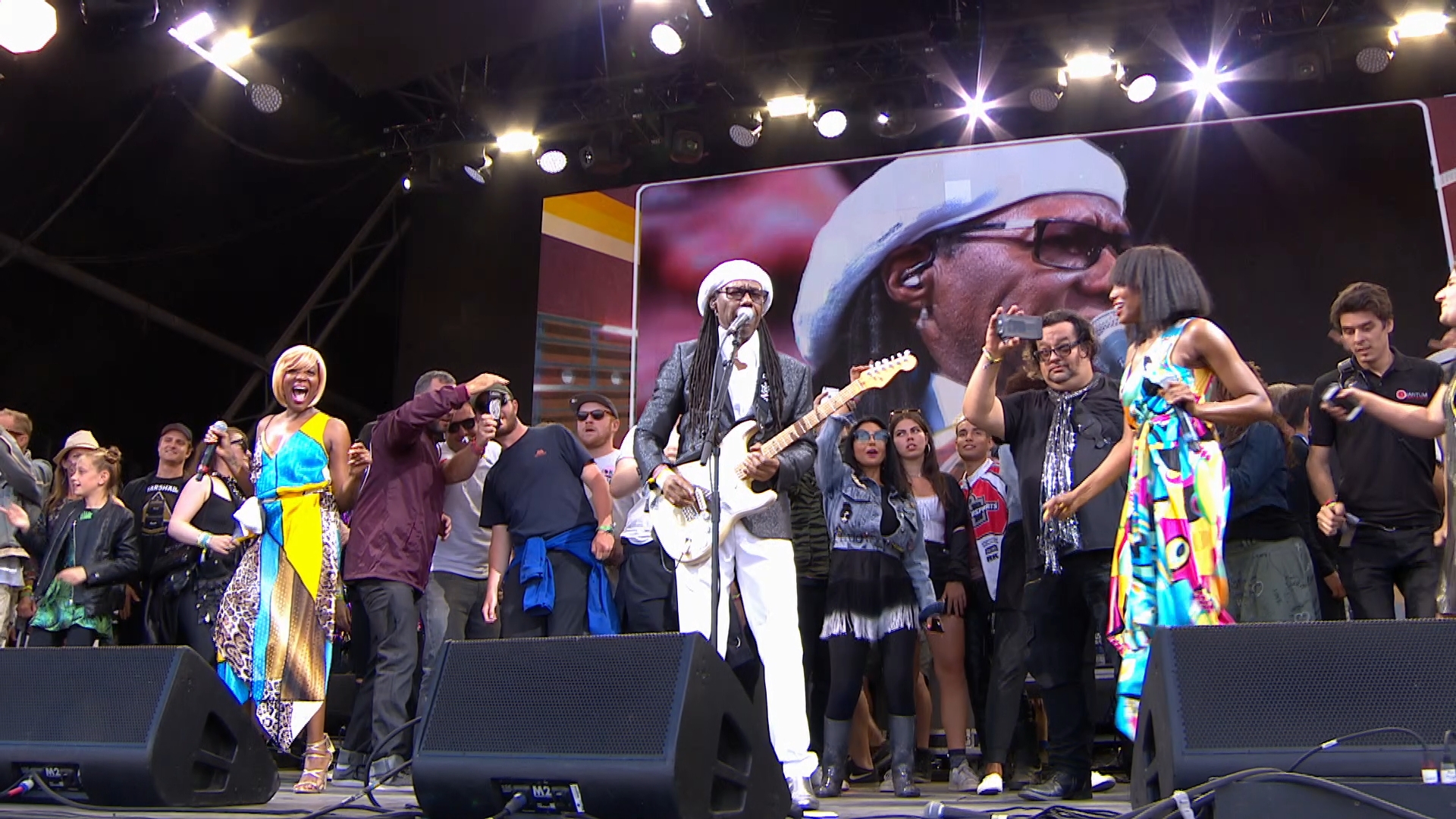 Chic - Glastonbury - 25-6-17 Everybody Dance I Want Your Love I'm Coming Out - (Diana Ross cover) Upside Down - (Diana Ross cover) He's the Greatest Dancer - (Sister Sledge cover) We Are Family - (Sister Sledge cover) My Feet Keep Dancing Get Lucky - (Daft Punk cover) Let's Dance - (David Bowie cover) Le Freak Good Times / Rapper's Delight