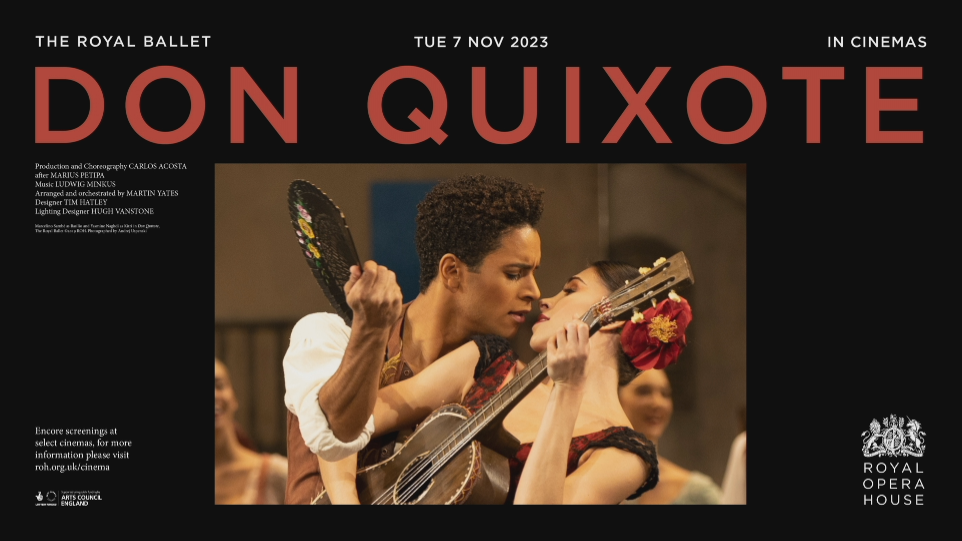 ROH - Don Quixote - 7-11-23 Conductor - Valery Ovsyanikov Don Quixote - Gary Avis Sancho Panza His squire - Liam Boswell Lorenzo The innkeeper - Thomas Whitehead Kitri His daughter - Mayara Magri Basilio A young barber - Matthew Ball Gamache A rich nobleman - James Hay Espada A famous matador - Calvin Richardson Mercedes A street dancer - Leticia Dias Dulcinea - Nadia Mullova-Barley Kitri's Friends - Sophie Allnatt, Sae Maeda Two Matadors - David Donnelly, Joseph Sissens Gypsy Couple - Hannah Grennell, Leo Dixon The Queen of the Dryads - Annette Buvoli Amour - Isabella Gasparini Fandango Couple - Mica Bradbury, Lukas B. Brændsrød Guitarists - Forbes Henderson, Daniel Thomas, Nigel Woodhouse, Tom Ellis