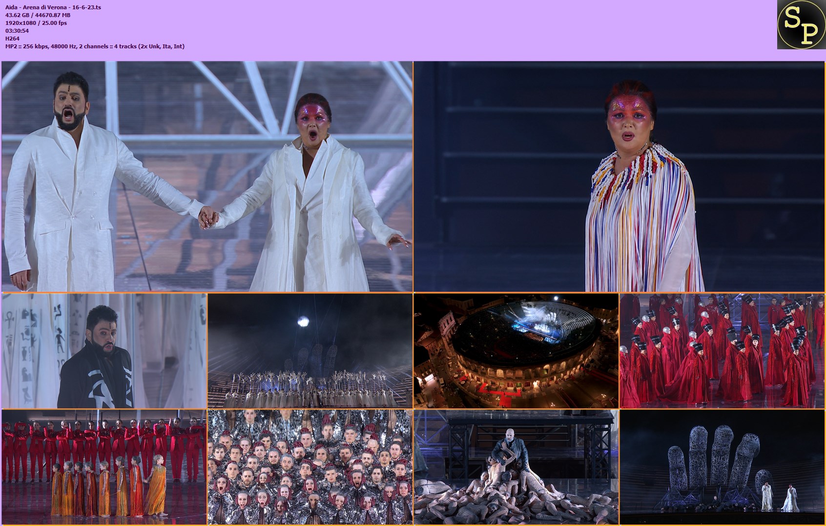 La Grande Opera Italiana Patrimonio dell'Umanità - Arena di Verona - 7-6-24 Les tringles des sistres tintaient Aigul Akhmetshina Sofia Koberidze,Daniela Cappiello Largo al factotum della città · Nicola Alaimo Intermezzo · Roberto Bolle Coro a bocca chiusa · Roberto Bolle, Nicoletta Manni Un bel dì vedremo · Eleonora Buratto Vecchia zimarra, senti · Gianluca Buratto Tu che di gel sei cinta · Rosa Feola Che gelida manina, Rigoletto La donna è mobile · Juan Diego Flórez Nessun dorma · Vittorio Grigolo Libiamo ne’ lieti calici · Vittorio Grigolo, Rosa Feola Quando me'n vo · Juliana Grigoryan Recitar!... Vesti la giubba · Brian Jagde E lucevan le stelle · Jonas Kaufmann Una furtiva lagrima · Francesco Meli Vissi d’arte, Gianni Schicchi Casta Diva · Jessica Pratt Di quella pira · Galeano Salas Cortigiani, vil razza dannata · Luca Salsi Va’ Tosca… Te Deum · Luca Salsi Matteo Macchioni Oh! quante volte, oh quante · Mariangela Sicilia Nemico della patria · Ludovic Tézier Cori e scene da Aida, Messa da Requiem Direttore - Riccardo Muti Direttore - Francesco Ivan Ciampa